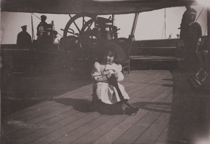 Елизавета, дочь Даки с котенком на палубе яхты «Штандарт»