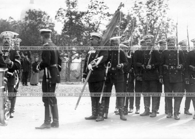 Отряд моряков гвардейского флотского экипажа на Адмиралтейском проспекте у Александровского сада.