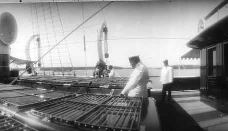 Император Николай II (3-й слева) беседует с офицерами на борту яхты "Штандарт"