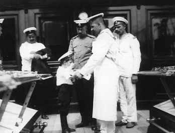 Наследник-цесаревич Алексей пробует пищу на яхте "Штандарт" во время плавания царской семьи в Шхерах