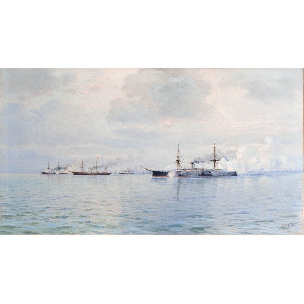 Блинов Леонид Демьянович (1867-1903) «Императорская яхта «Держава» в сопровождении боевых кораблей», 1888г.
