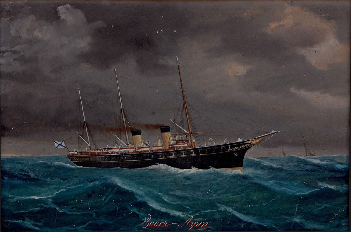 На рисунке изображена императорская яхта «Штандарт», названная в честь открытия Россией торгового пути через Балтийское море. Яхта была заложена при императоре Александре III в Копенгагене; спущена на воду в 1895 г.