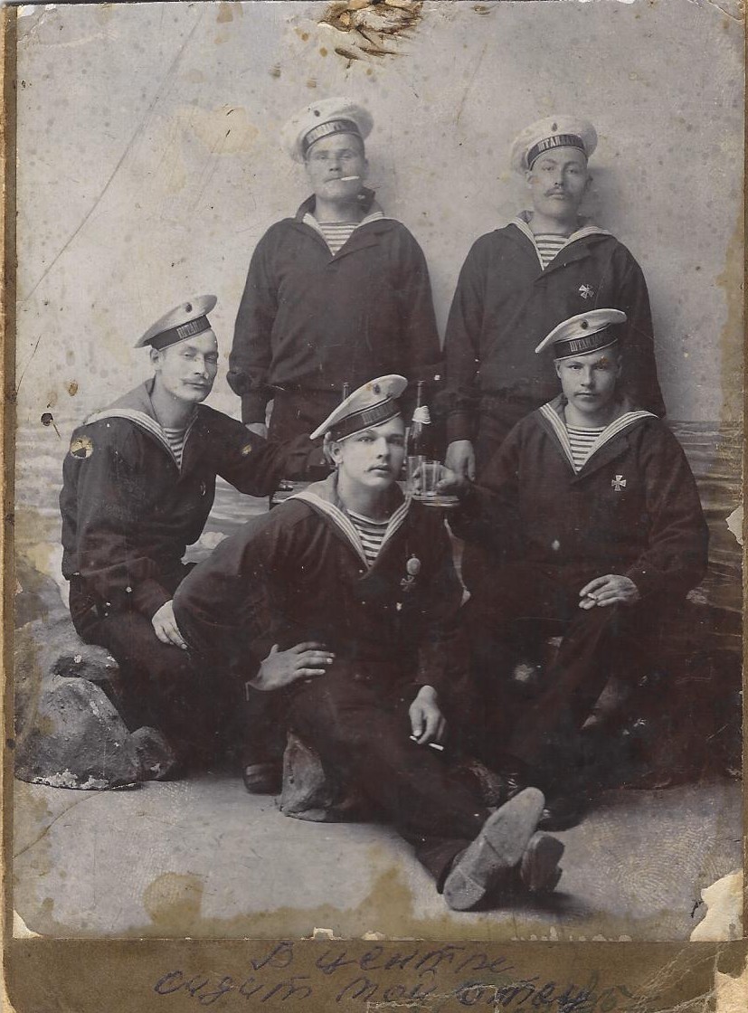 В центре сидит Яков Степанович Постыляков. Ялта, после 1910г.